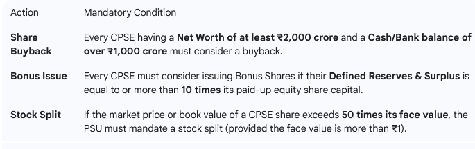 from gemini, which quotes Department of Investment and Public Asset Management (DIPAM) Guidelines on Capital Restructuring of Central Public Sector Enterprises (CPSEs).