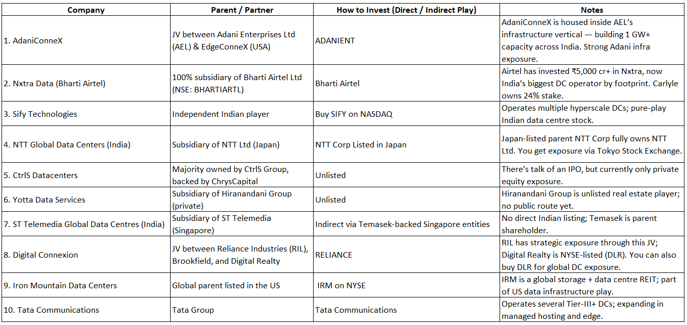 Currently, the closest BSE-equivalent is Colocation/ data centre operators, such as those mentioned in the Above Threads, because every MB of data, every AI inference, and every cloud deployment pays rent to them.