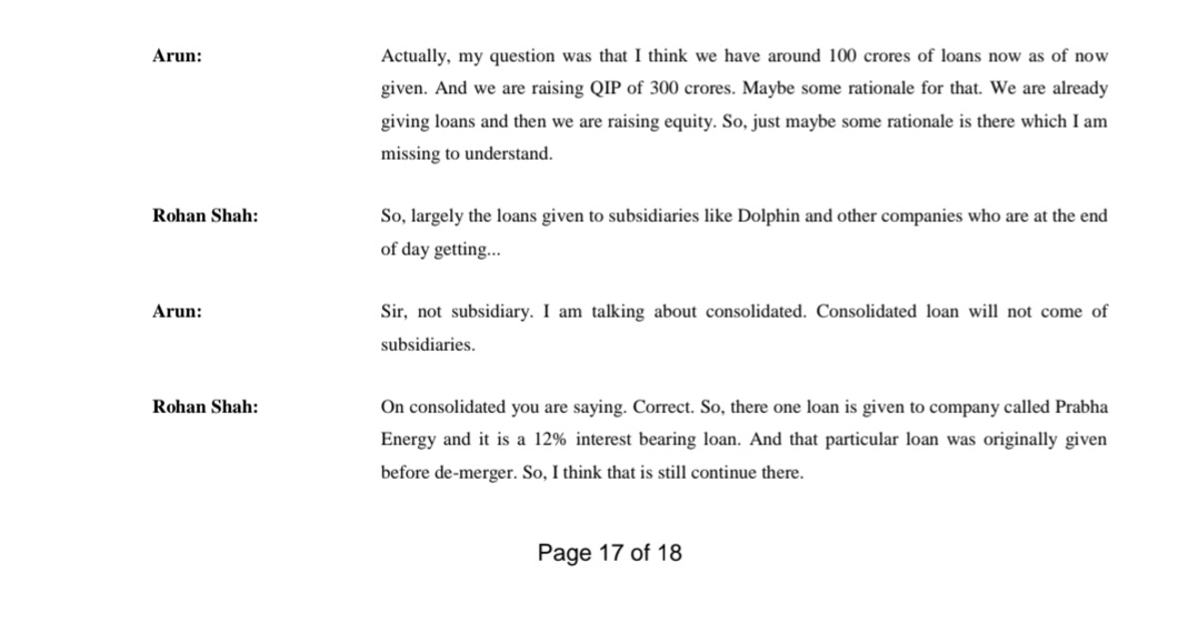 Can you please attach screenshot where management told that loan was given for subsidiary? As far as i know, they clearly mentioned loan was for Prabha Energy