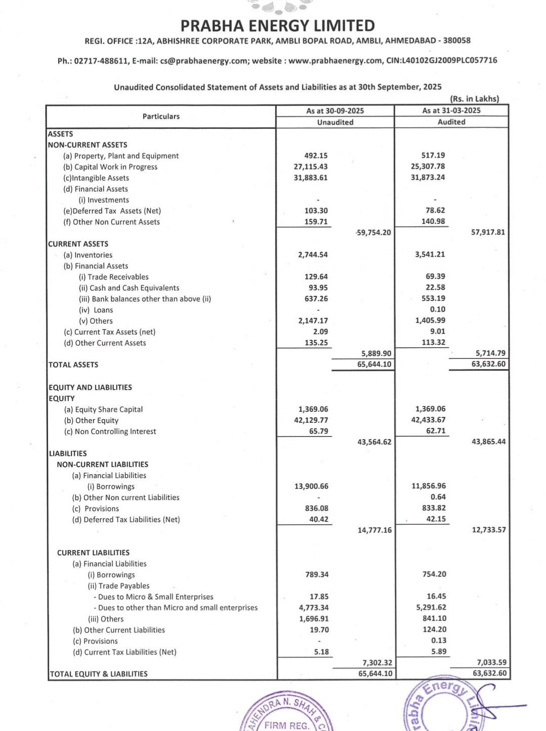 Prabha sep ended balance sheet, showing an increase in non current liability loan.