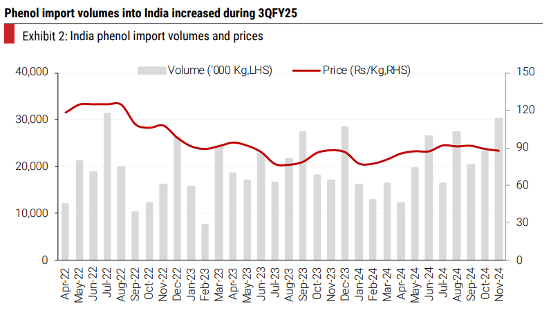 Phenol spreads in India have fallen sharply