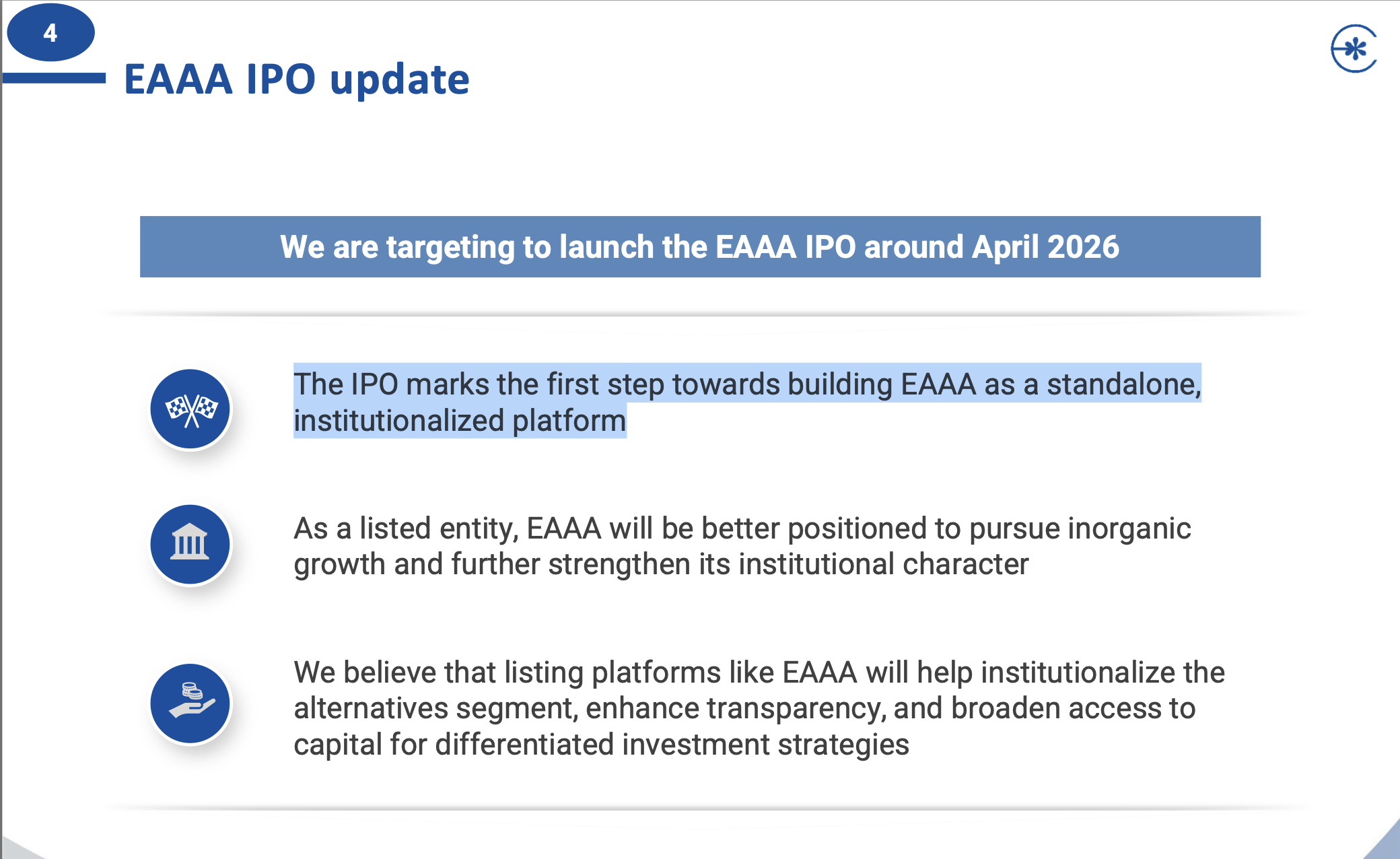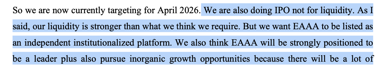 Just to correct- EAA they are going to IPO not demerger.