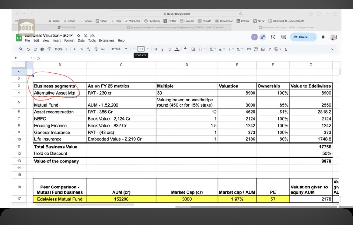 So Edelweiss is overvalued after 50% holding co discount.