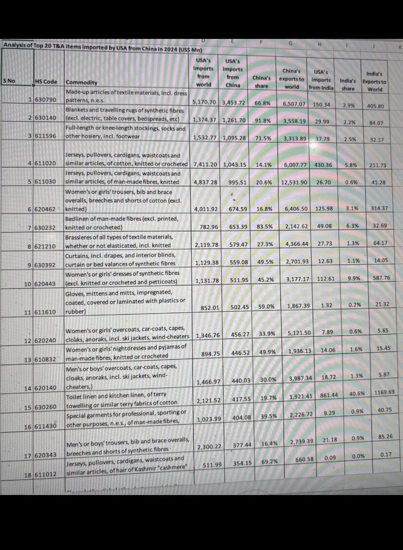 A comparison of exports of textile products to the USA. India Vs China.