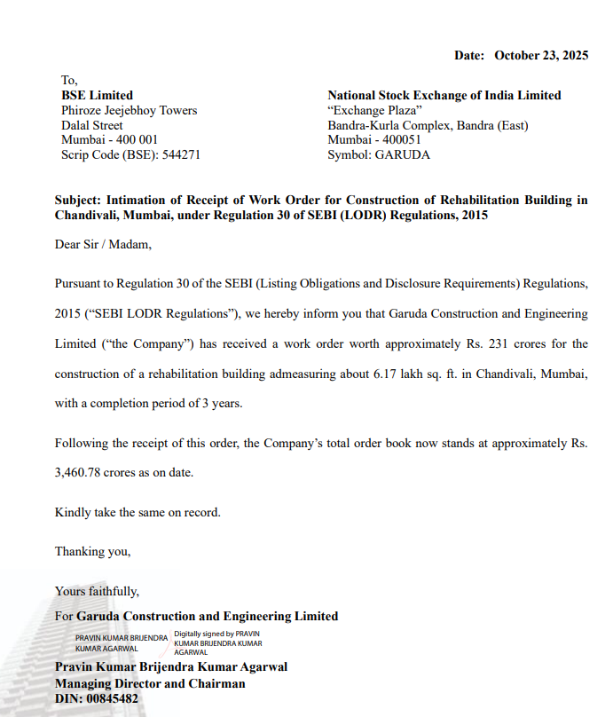 The main benefit for Garuda is that it is not involved in project planning, land acquisition, or related activities. Garuda’s primary responsibility is construction, while all other aspects are managed by the Promoter and Group companies.