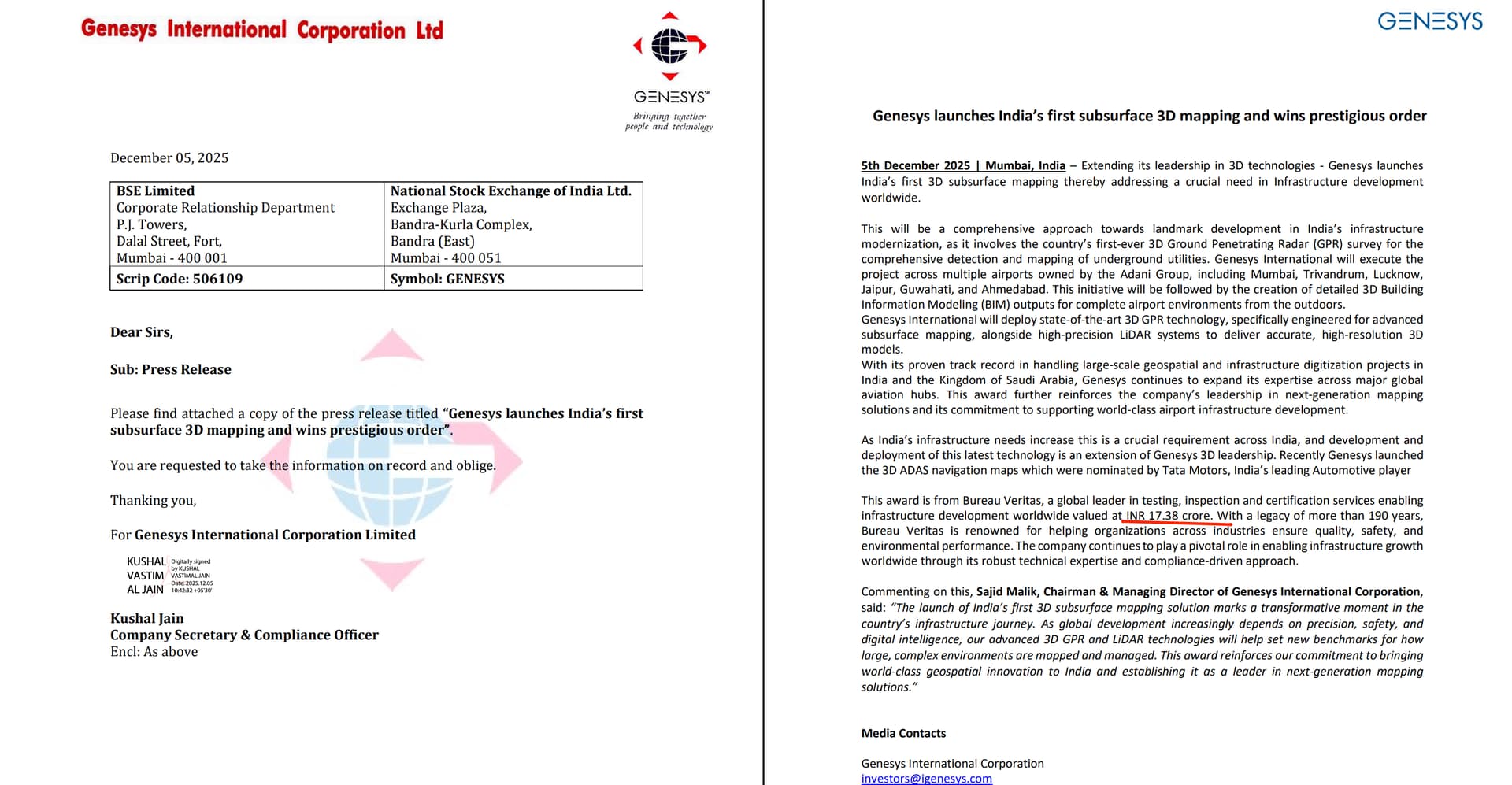 and is expected to showcase immense potential in the coming quarters, positioning Genesys at the forefront of Indiaâs digital mapping and mobility transformation while driving sustainable, long-term growth