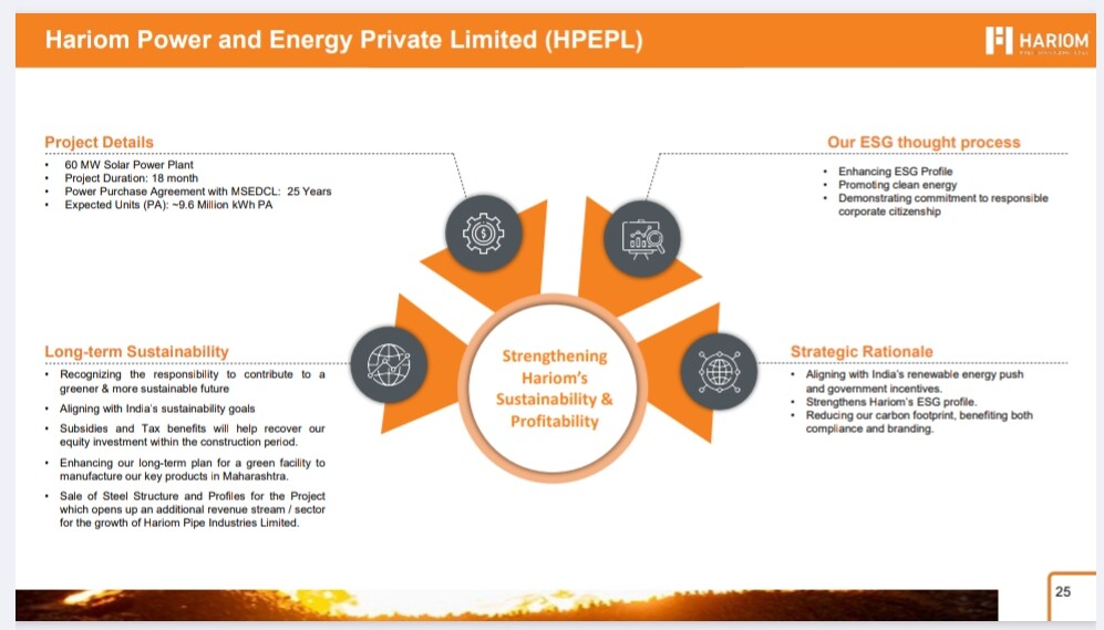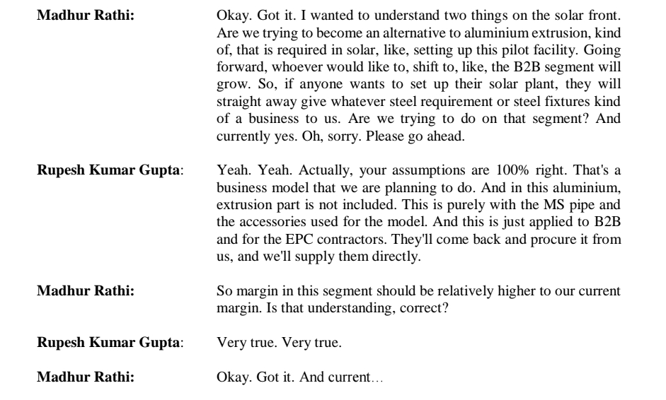 If the move is revenue accrual and contributes to the numbers, I don’t see the venture a problem, since they are into pipes, they might already have some input raw material manufacturing capabilities inhouse, like panel mounting structures etc.