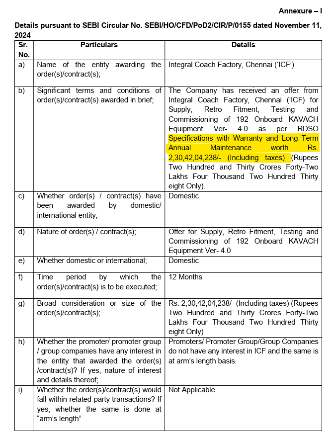 Big growth YoY, quarterly dip was expected but honestly I was expecting close to ~1000 cr revenue as they had time to ramp up Trackside/ Stations kavach execution.
