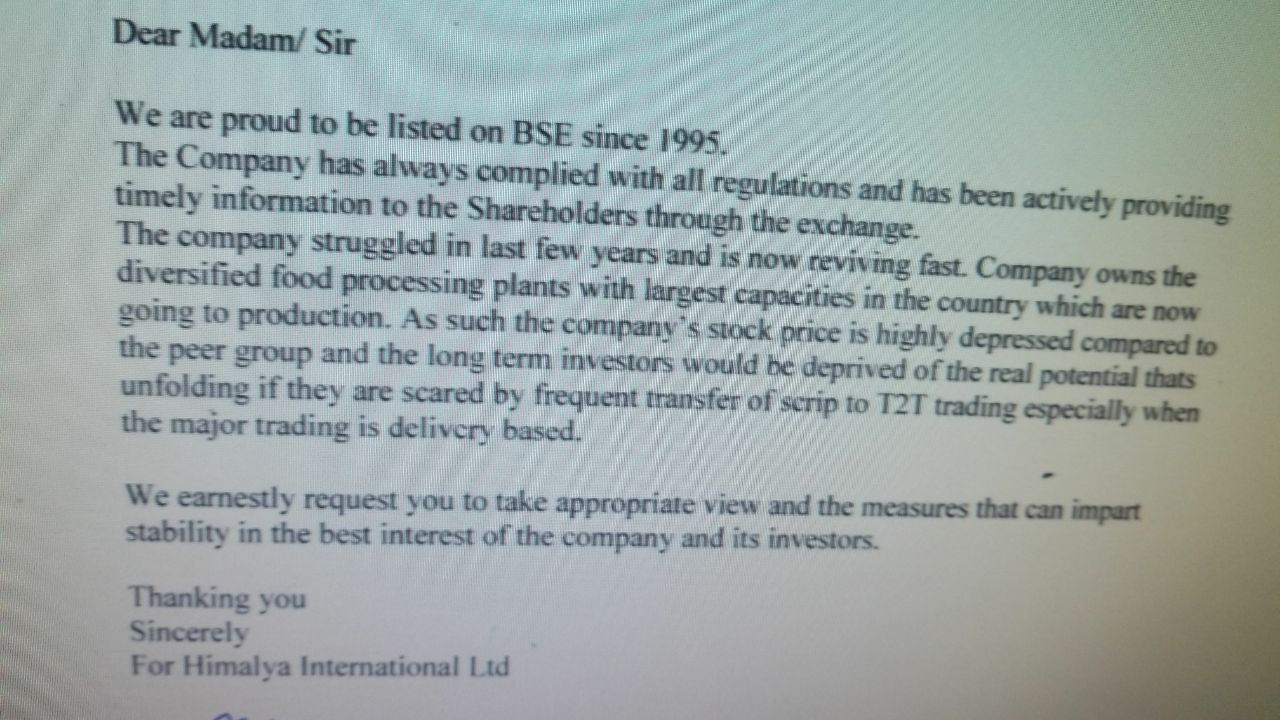 Company plans to change name from Himalya International to Himalaya Foods or Himalaya Frozen Foods