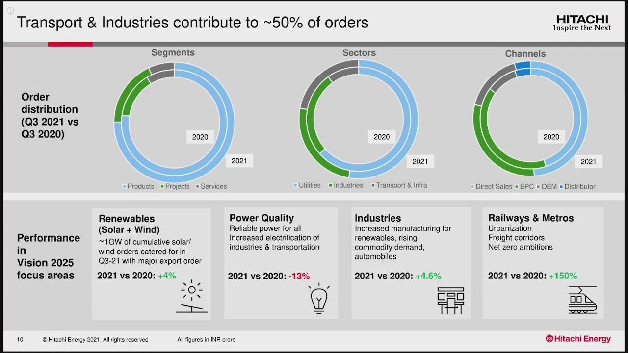 The opportunity needs to be converted into hard numbers… where it is lagging so far… Had hopes from March 21 Qtr, but alas… Both on new orders booking and actual revenues there was disappointment. Cost profile is high. 5%+ payments to parent and sisters. IT support payments to ABB additional… Hitachi presence yet to be seen… Management and Board is from the legacy ABB side