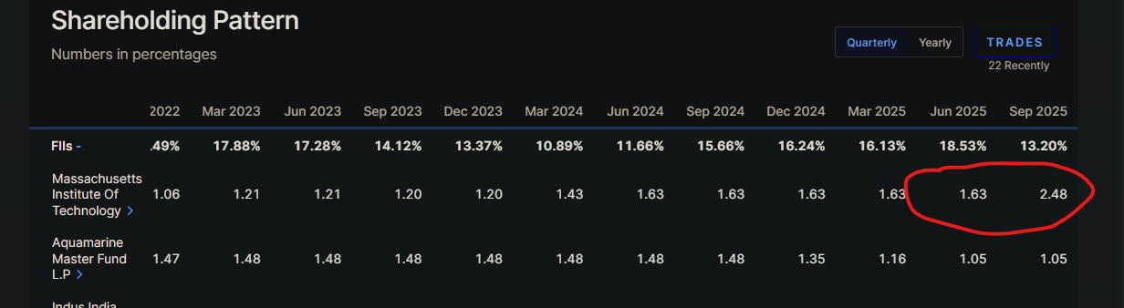 while there was significant FII dumping during the crash, one known FII actually increased its stake significantly (Indian Energy Exchange Ltd share price | About Indian Energy Ex | Key Insights - Screener) :