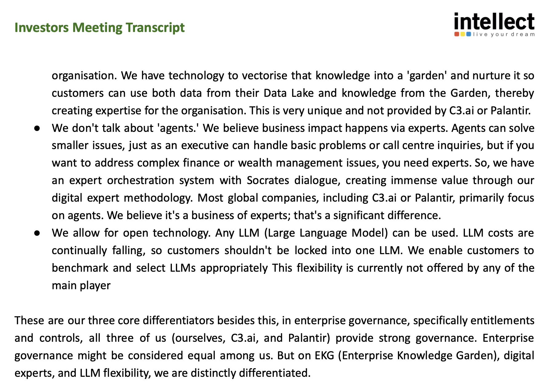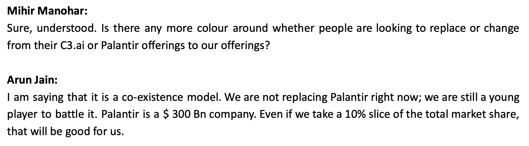 Does that confirm Intellect doesn’t have any differentiation from Palantir & C3.ai?