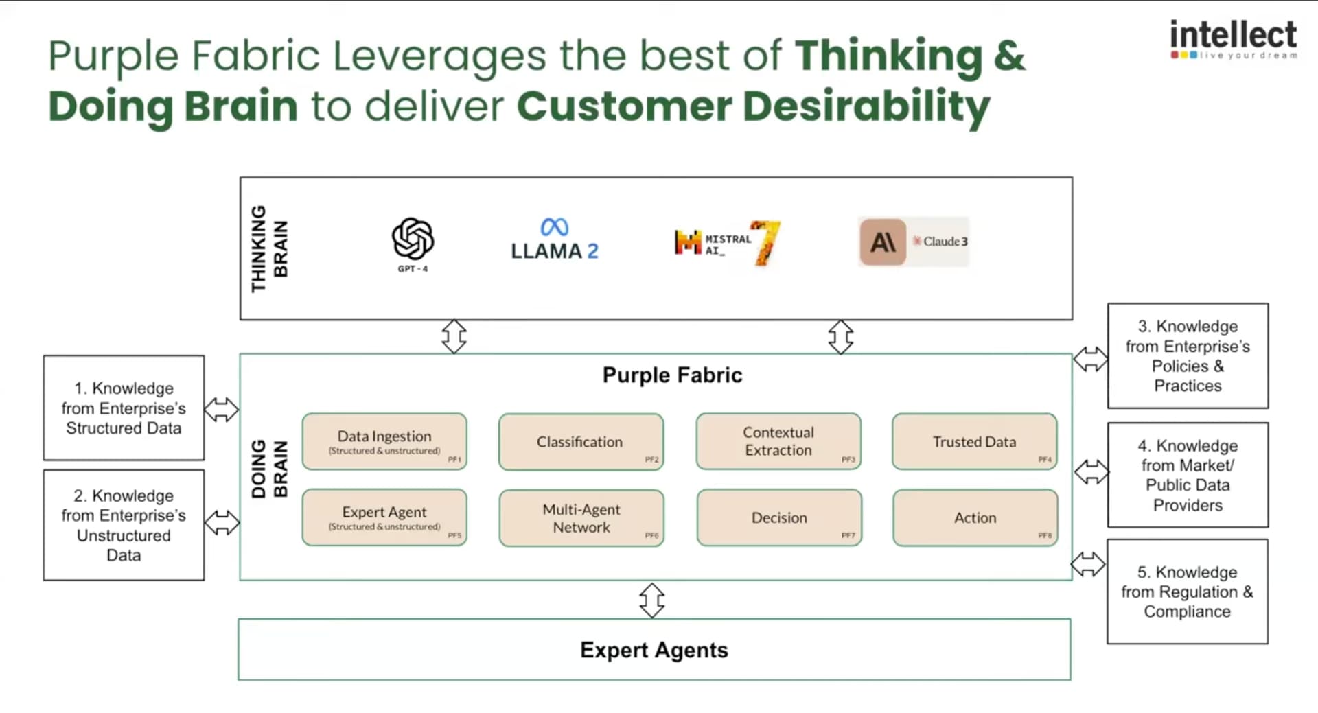 - Socrates Dialogue Algorithm: Intellect’s fancy name for a Multi-Agent Debate system. Instead of asking one AI to give an answer (which might be wrong or “hallucinated”), the system assigns different AI “personas” to argue with each other before presenting the final result to the user.