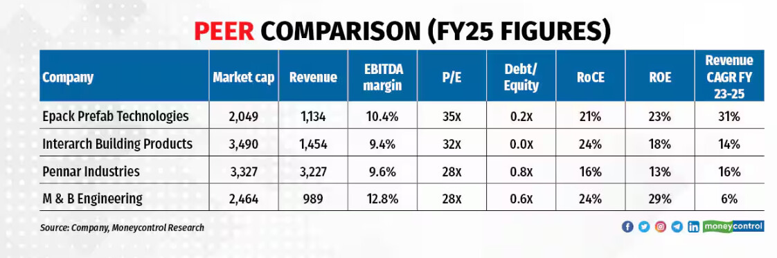 Separately, I was surprised with 13% margins from M&B engineering given how tight unit economics are. Turns out, they are indeed doing small 2000-5000 sq mtr warehouses in USA under technical collaboration with Varco Pruden. Again, these are very small projects, they can command higher spreads but unlikely to move the needle significantly in my view.