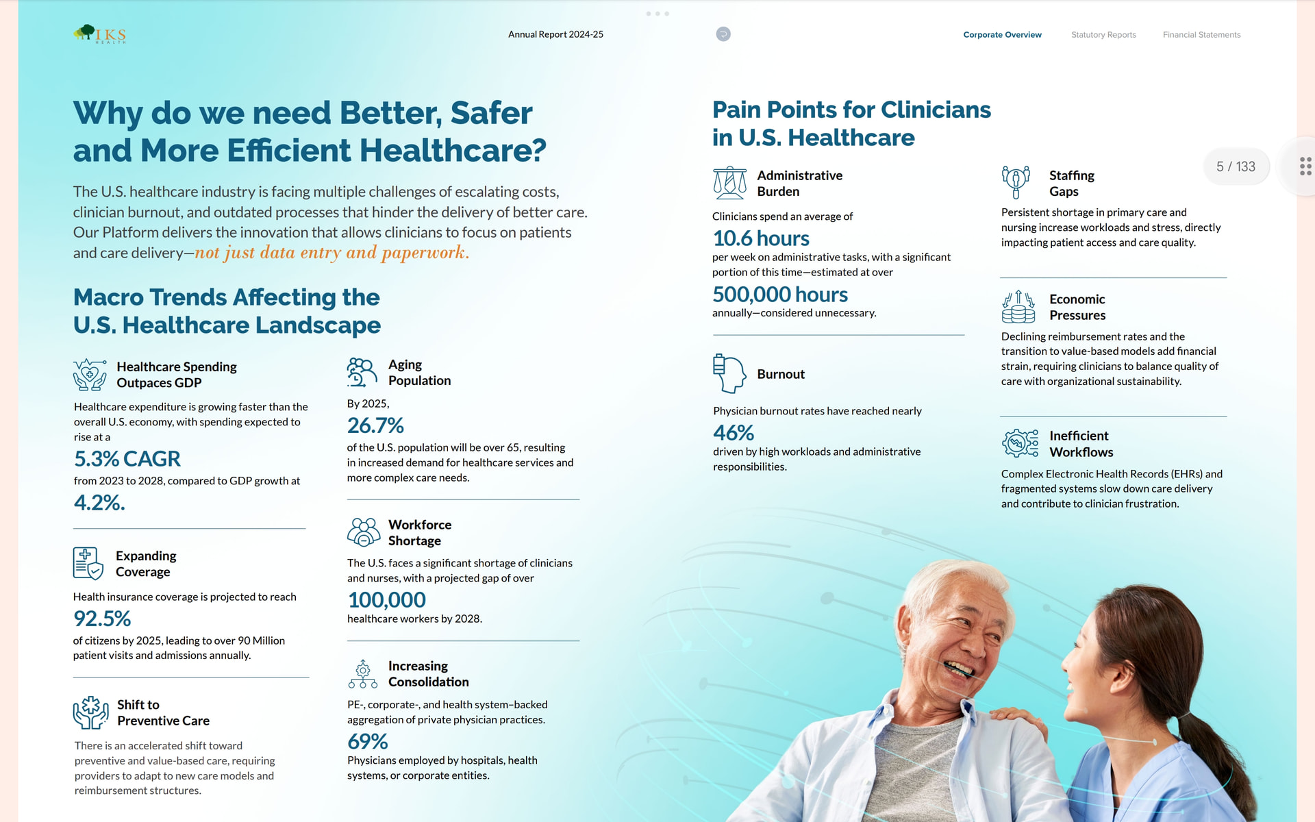 Business Model and Service Offerings - IKS operates as a technology-enabled healthcare solutions provider, primarily assisting physician enterprises across outpatient and inpatient care organizations mainly in the United States. The fundamental objective of the company is to empower physicians by alleviating their administrative and operational burdens, thereby enabling them to concentrate more effectively on patient care.