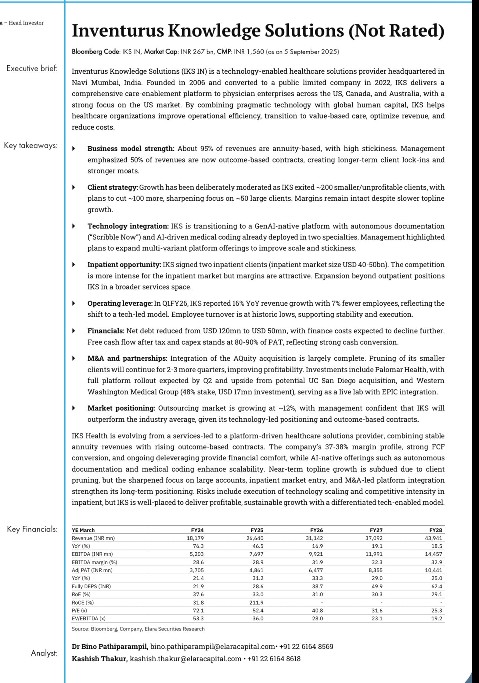 INTRODUCTION - Inventurus Knowledge Solutions Limited (IKS) is a prominent technology-enabled healthcare solutions provider, primarily serving physician enterprises across the United States, Canada, and Australia, with a major focus on the lucrative U.S. market.