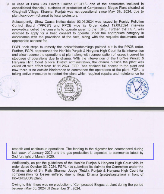 Subsidiary Farm Gas Private Limited issues seems to be resolved (wasn’t aware of this).