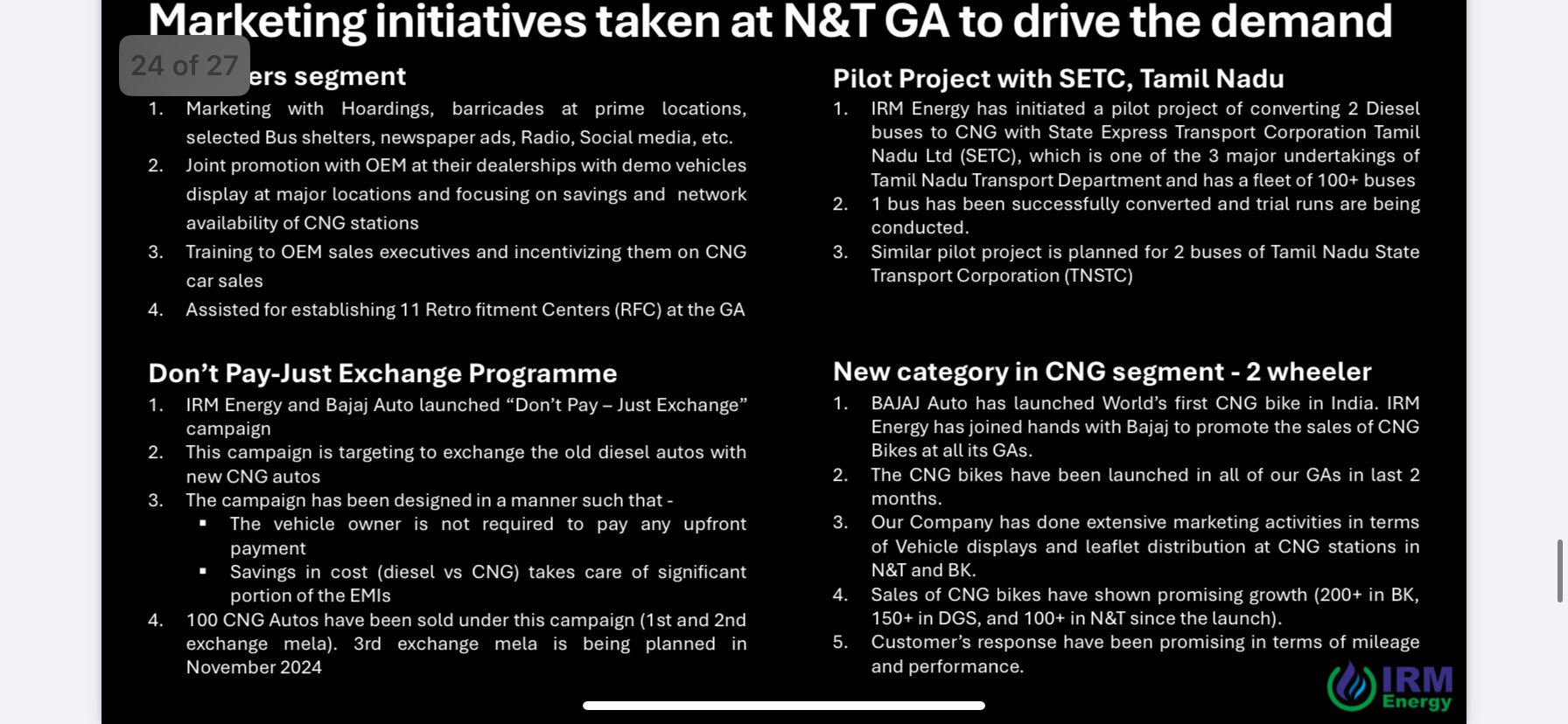 IRM energy is still in investing phase and once pipelines in Trichy Namakkal area are established next 3 years growth could potentially be much higher. I first got interested after seeing it correct a lot from IPO price and reading news around IPO time was helpful. Of course, there are other corporate governance issues but I see traction after new CEO assumed office.