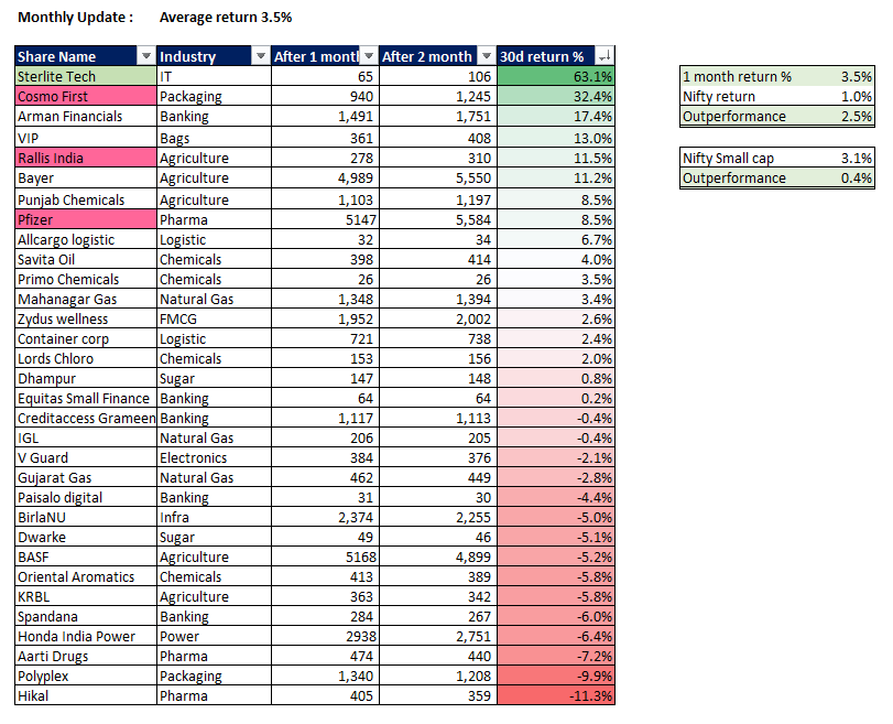 Average 11.6% return in May. Beating Nifty by 8.4% and Nifty small cap by 3.9%.