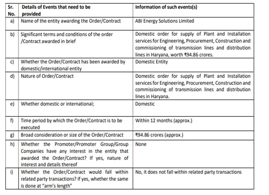 • 400 KV segment: Contribution from 400 kV and above was about 12% to 14% of our total business, which translates to about INR25 crores, INR26 crores.