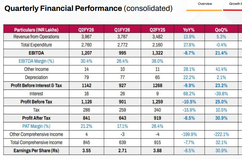 Investment in Products: The company has initiated investment in product development, particularly in AI and Big Data. The IT product segment (which recorded ₹1.03 crores in Q2 revenue with a lower contribution margin) involves upfront development and marketing investment but provides long-term scalability potential. This investment dampens overall margins