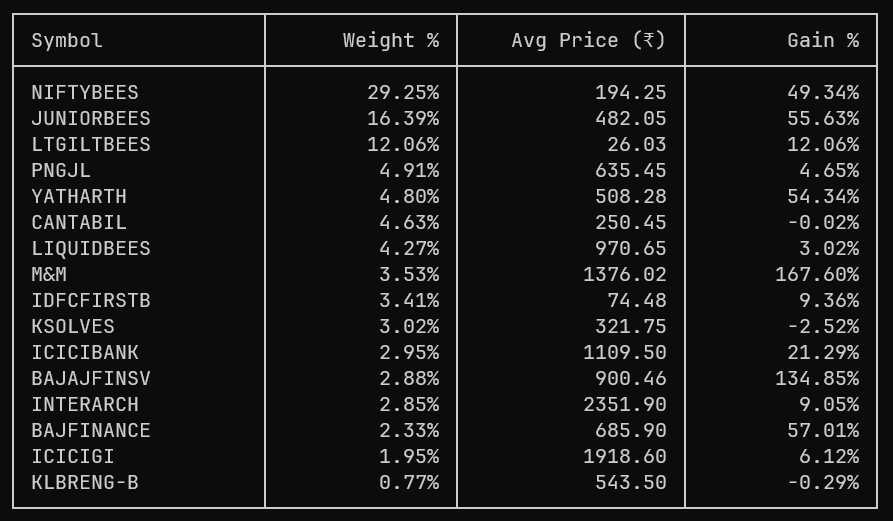 I started this portfolio since 2020 and I was buying stocks without understanding business or its results. I got lucky in with some (like M&M and Bajaj Finserve) so I still have them. rest I cleaned up in last one year.