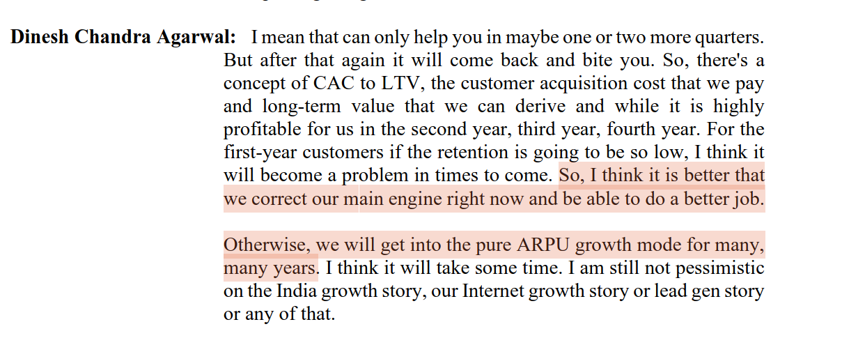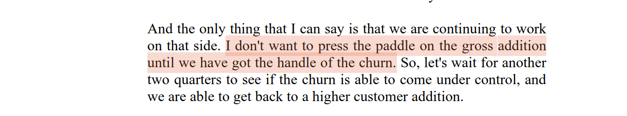 - when they solve churn problem, business can growth easily at 20% CAGR for many years to come, If they can’t solve they can still be able to grow business.