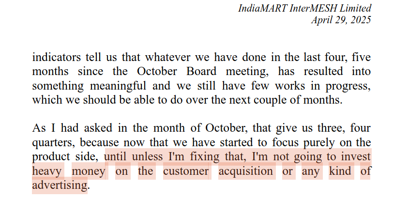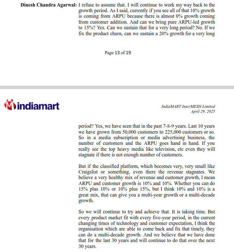 I had entered Indiamart during covid and by sheer luck exited at the peak making good profits. After that it started a slow downward journey. I have again started tracking Indiamart for last 4-6 quarters. Management is trying very hard to find root causes for low growth and address them to get back to higher growth they have not been very successful as yet. I understand it is cash generating business available at relatively reasonable valuations (in context of growth struggles). Would it be possible for you to share your thesis for Indiamart?