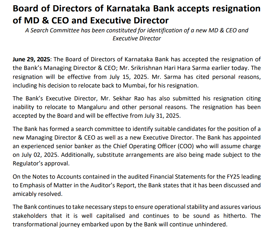 It feels like current ceo is going back to old ways of running Ktk Bank. Previous CEO, I remember, made a case for centralized decision making to speed up loan approval and as well, improve asset quality. now, current ceo wants to go back to branch managers having control. Well, only time will tell. But one thing I am hoping is that existing employees appreciate current ceo as he is obviously a cultural fit for long term employees and it turns into some real results.