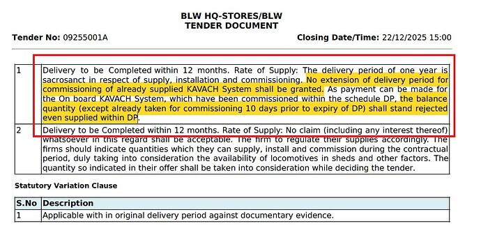 - Commissioning: I have no idea what steps are involved in commissioning. I am guessing that the Railways have come up with some Acceptance Testing Procedure (ATP) to certify whether the installed equipment is functioning as expected. But one can imagine that officers will be required for inspection and their sign-off will be required.