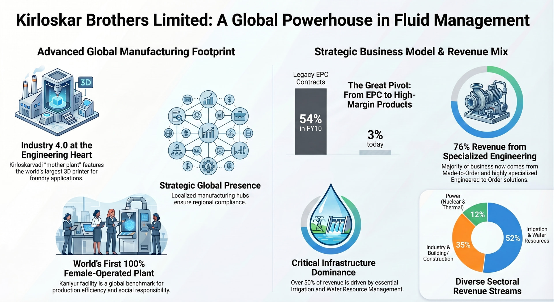 The Acquisition (2006): KBL acquired Chennai-based Aban Constructions to transform itself from a mere pump manufacturer into an end-to-end Engineering, Procurement, and Construction (EPC) turnkey contractor for massive pipeline and water projects.