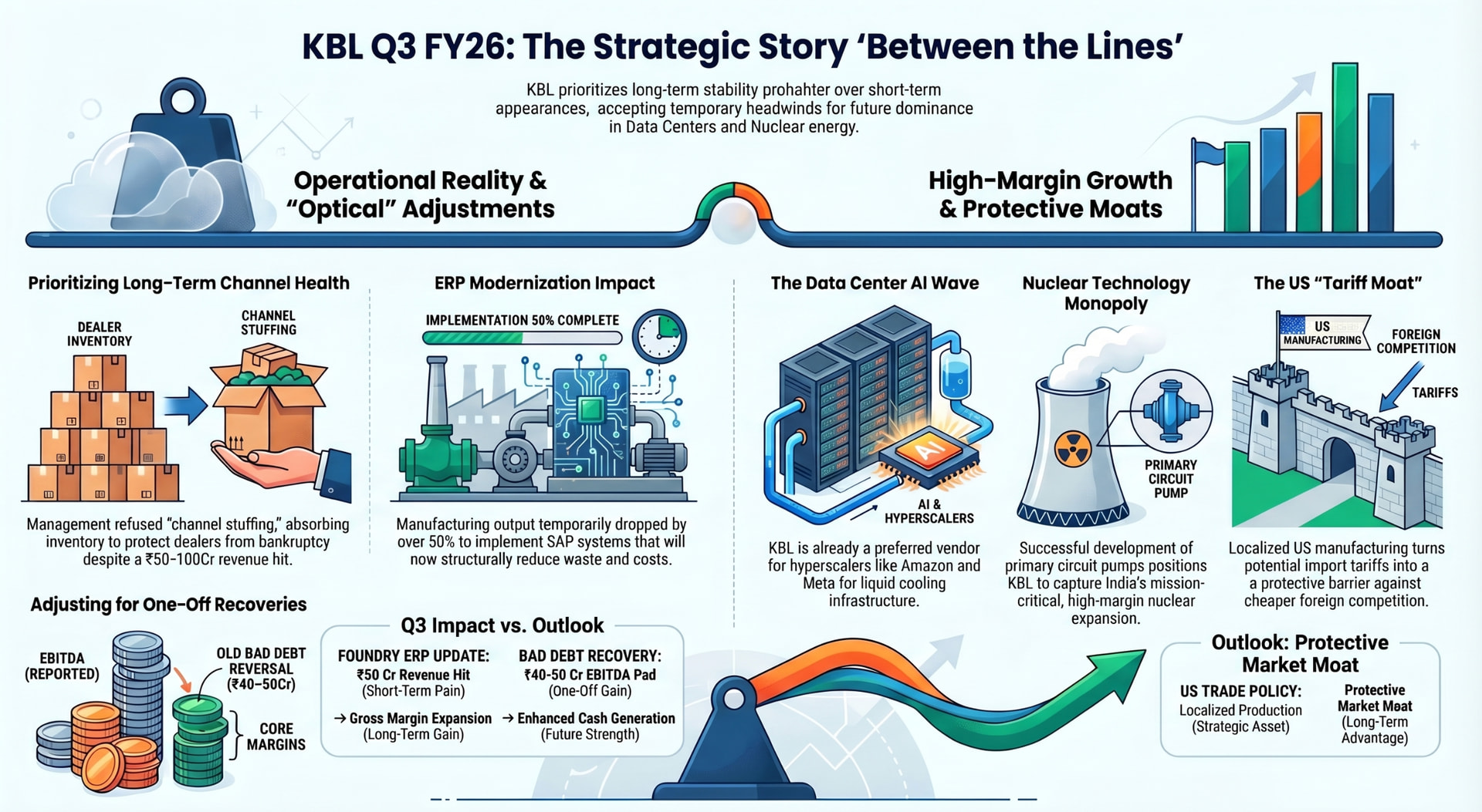 Reading Between the Lines: KBL essentially traded a quarter’s performance to overhaul its legacy manufacturing infrastructure. Management confirmed that the system reverted to target levels by the end of the quarter. More importantly, they noted the new system is now allowing them to “identify waste and also reduce costs”. With this friction now behind them, the ERP system should structurally expand gross margins in the Small and Medium Pump segments by tightening material tracking.