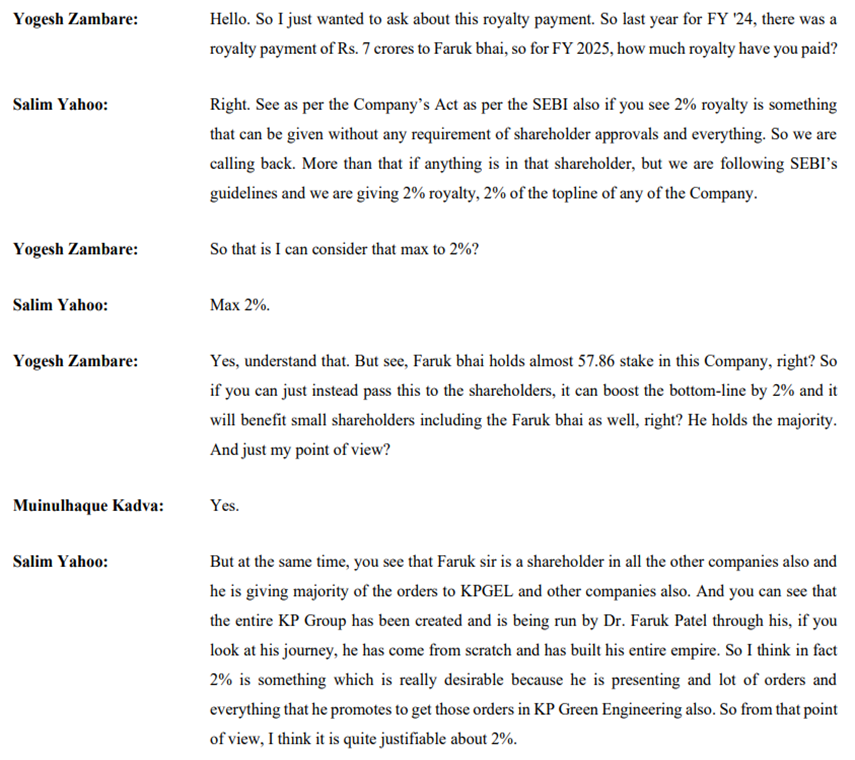 Recent red flags like property purchases and royalty payments to promoters suggest a pattern: capital being extracted in ways that donât benefit minority shareholders. While the business may continue to perform, these governance signals raise enough concern for me to step aside.