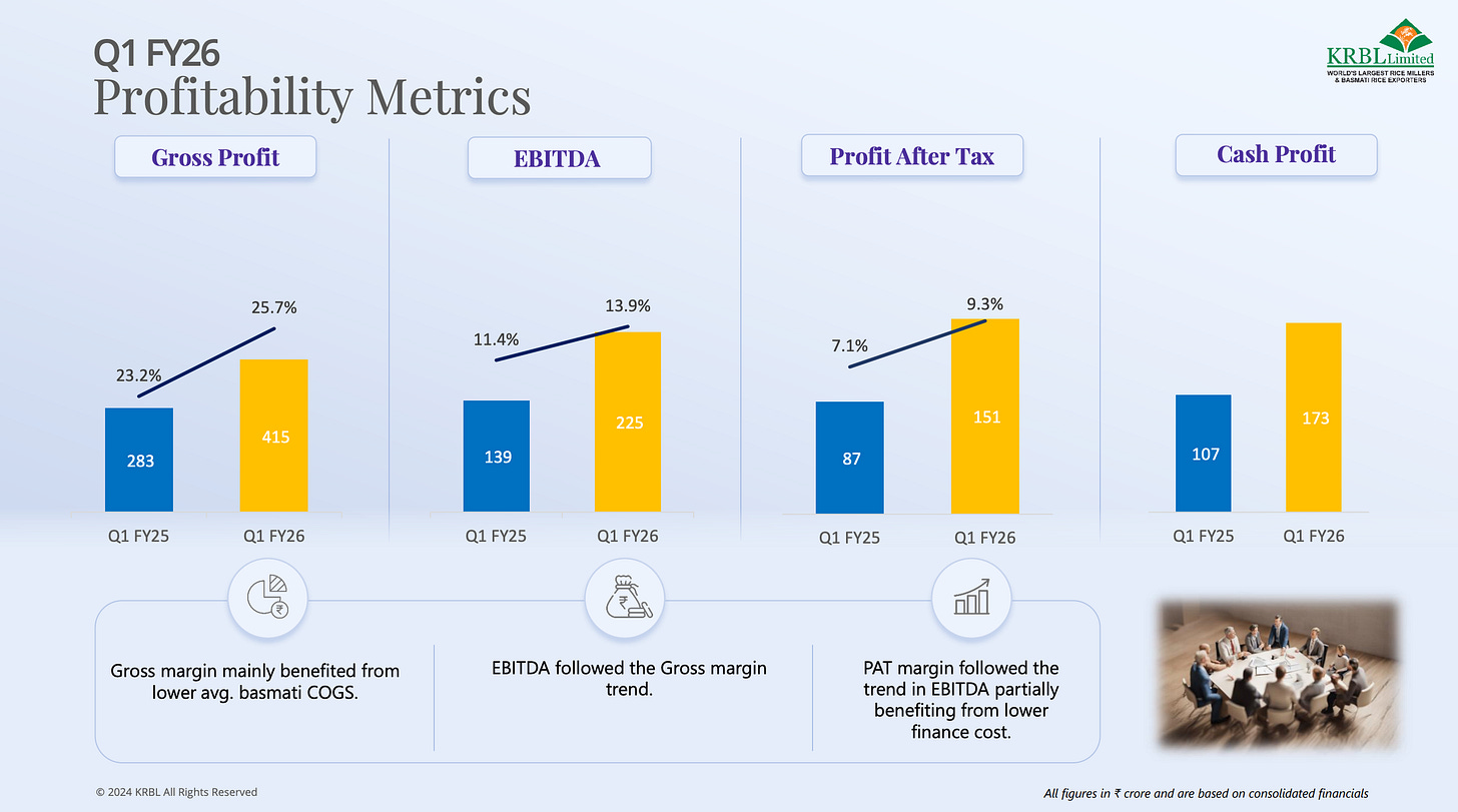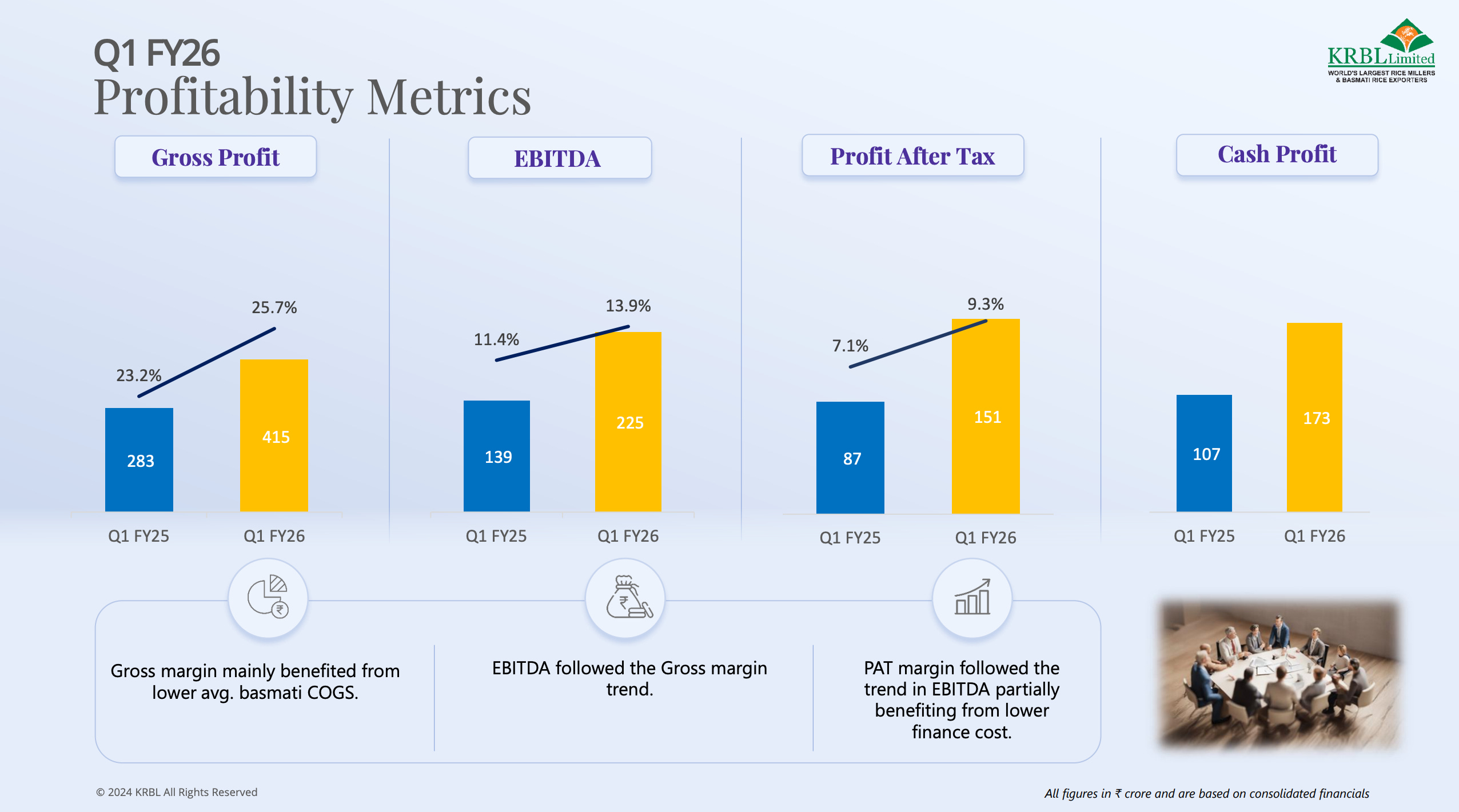 KRBL delivered a solid performance in the Q2 FY26. Income up 18%, Gross margin improved by over 5 percentage points. Inventory situation improved - resulting in cash and equivalents of over Rs. 2,000 Crore.