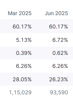 Interesting change in the June 2025, shareholding pattern. FIIs have added almost 1.75% sold by the retail investors. Infact almost 20k people have given up on the stock making it owned by less than 100k people.