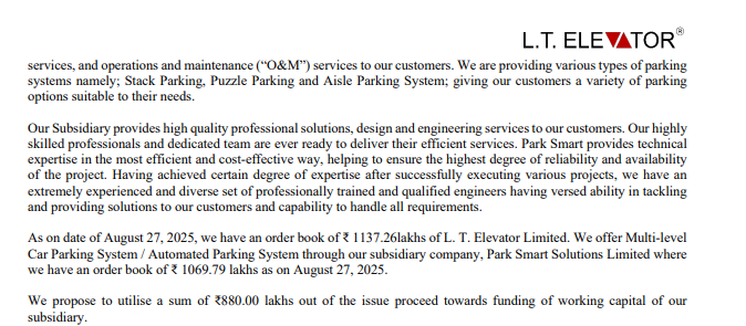 The company works through two entities. Parent LT is in lift and elevators, whereas 100% subsidiary Park Smart Solutions limited is in Mechanical car parking system. The consolidated result includes subsidiary financials w.e.f. Q4, 2024-25.