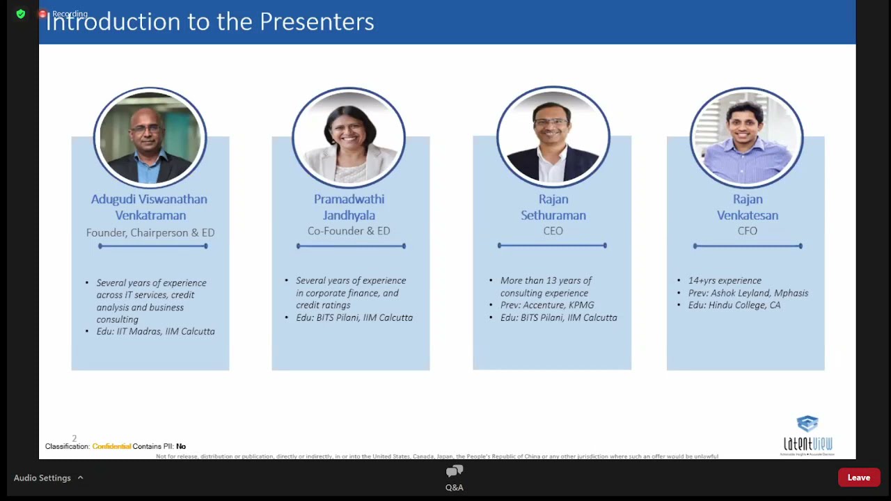 Latent view is the leading pure-play data analytics services company in India based on the expertise of the entire value chain of data analytics from data and analytics consulting to business analytics and insights, advanced predictive analytics, data engineering and digital solutions with a more holistic view of the business which is leveraged by its customers to guide business strategy and optimize spending decisions.