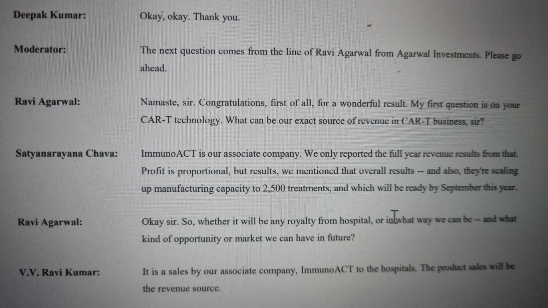 Can you guide me where Dr. Chava talked about the same. As in one interview he said that he is not expecting any meaningful revenue by FY26 or FY27… so bit surprised by this huge bump?