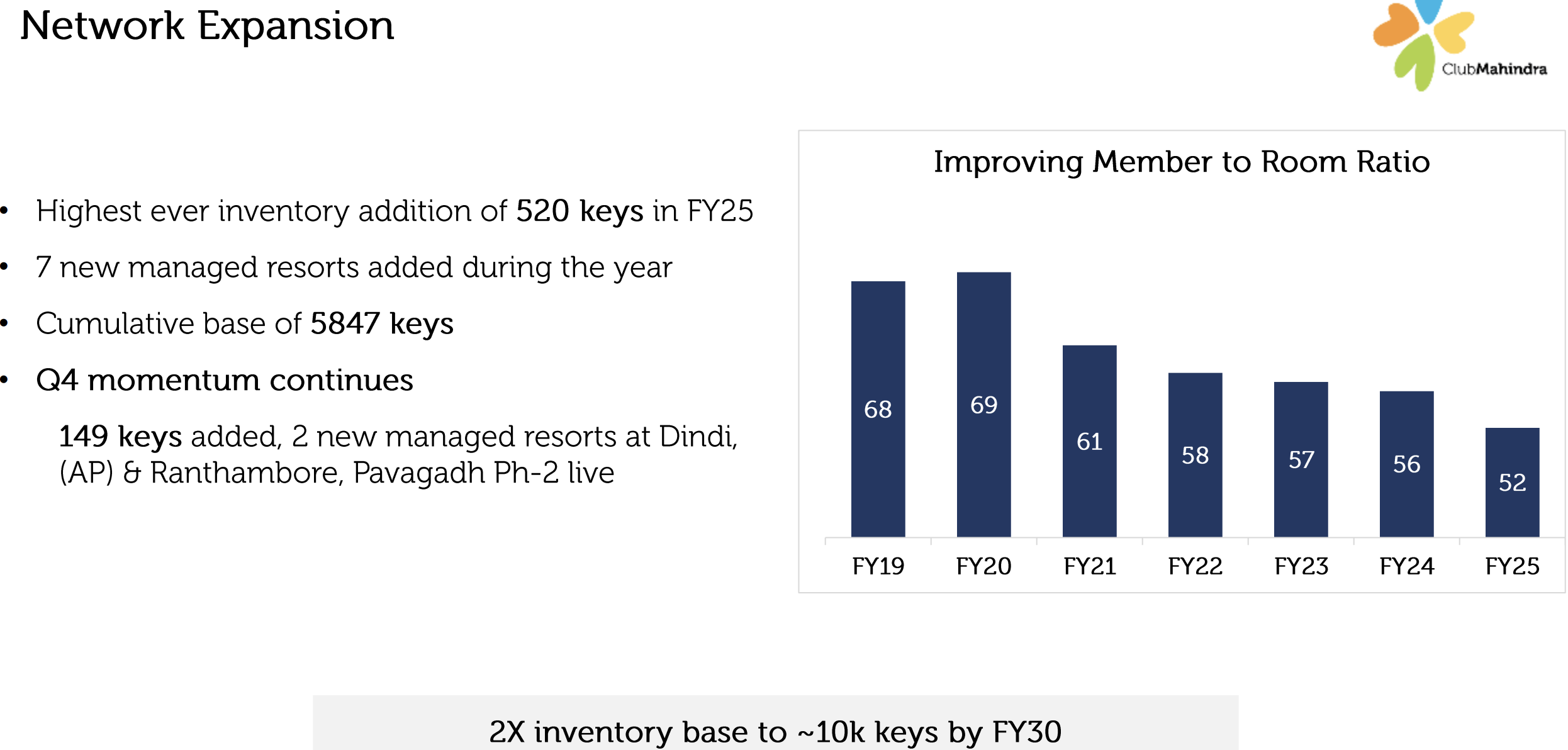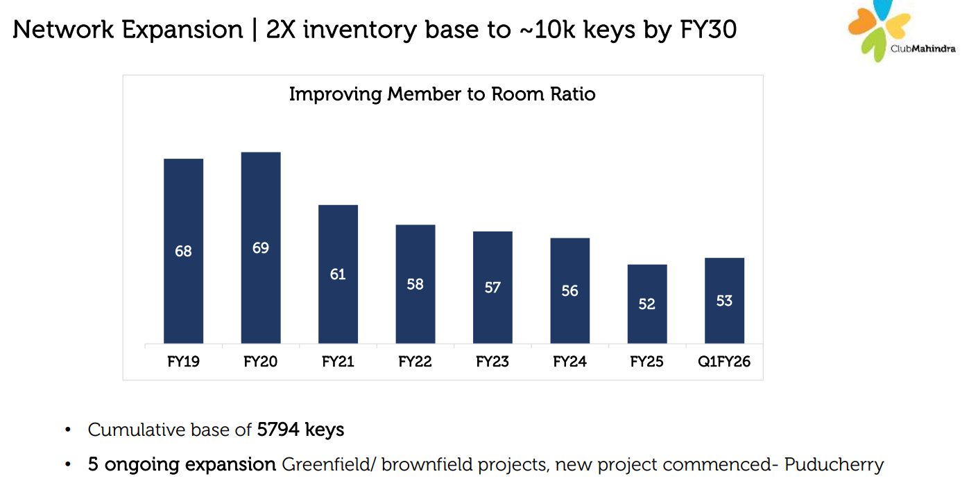 New Member additions in Q425 are down, seems MHRIL is focussing on the high end customers, hence average unit realisations have gone up; also this seems to be their response to the often complaint that members are not able to get rooms for booking.. The member to room inventory ratio has also been continuously improving, and I feel the management may want to focus on higher margin customers for the next few years.. the pace of new room inventory addition if broken down to quarters is also less than 200/quarter (4000 in 20 Qtrs (2025-2030))