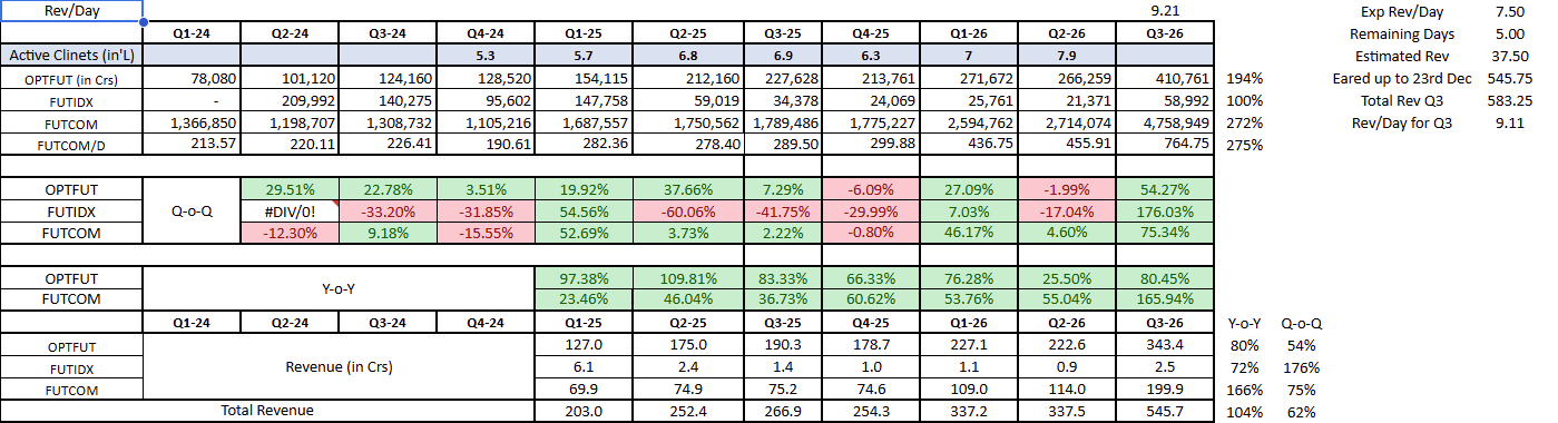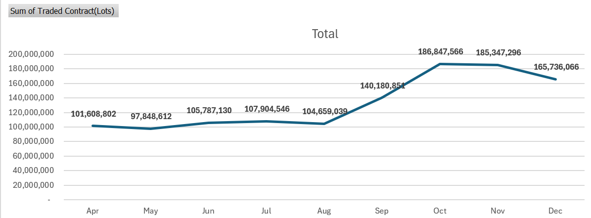 Not sure how that revenue helps MCX earn commission, but contracts traded look flat or stagnating over Oct-Dec