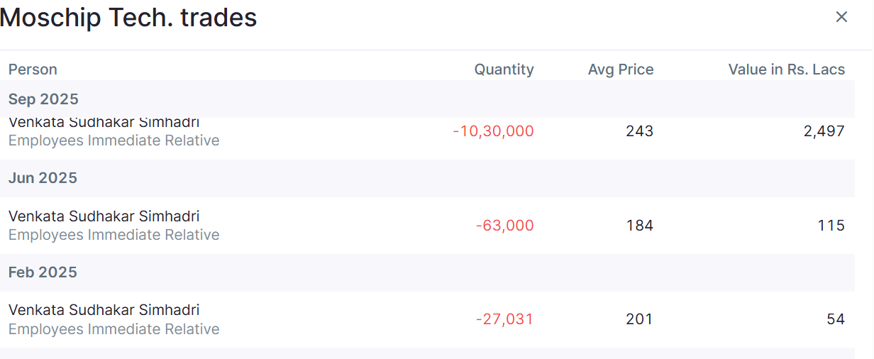Shareholding movement of MosChip [Source: screener.in]