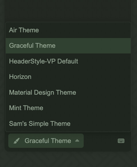 Multiple themes to select from. Select the HeaderStyle-VP default if you wish to stay on the default theme.Other themes are not having the Vp header as of now. Will be updated. You can see this option in the bottom left corner.