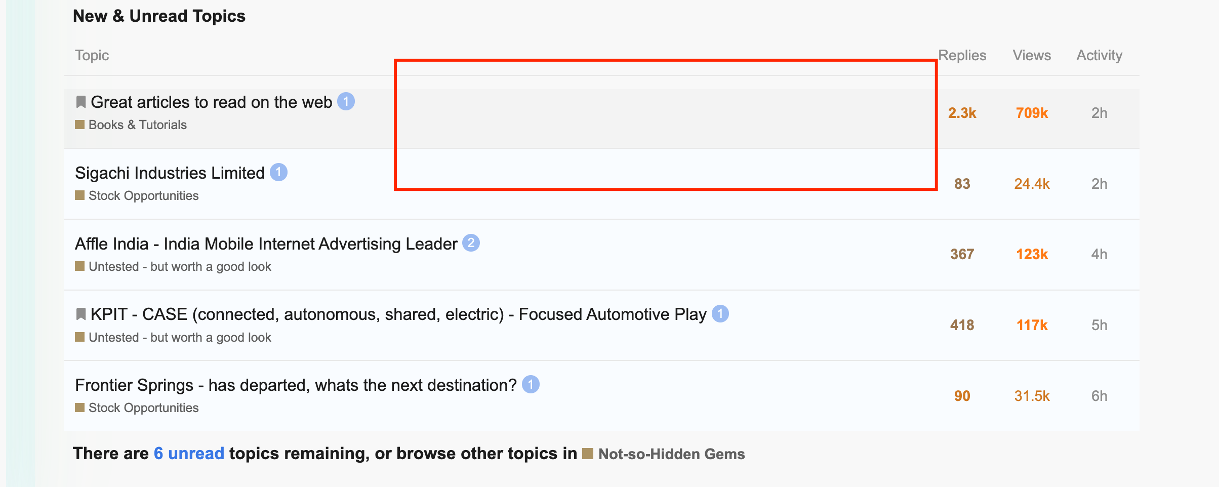 1. You can click on the space anywhere on the topic section marked in the red box to view the topic thread. This is supposed to be mobile friendly.