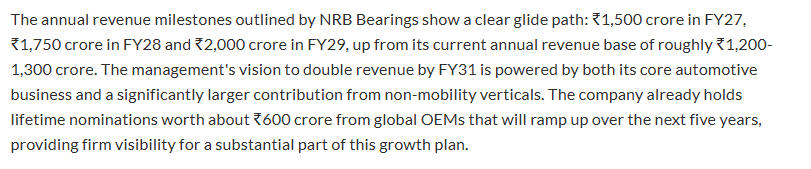As was evident in the results this past quarter- our financial performance puts NRB Bearings amongst the strongest performers within the auto component and bearing industry now that their events are behind us.
