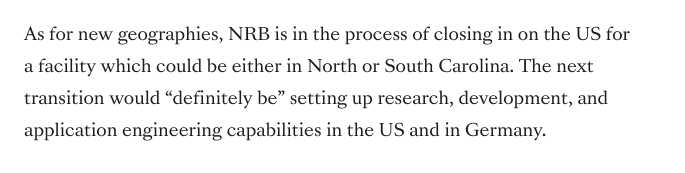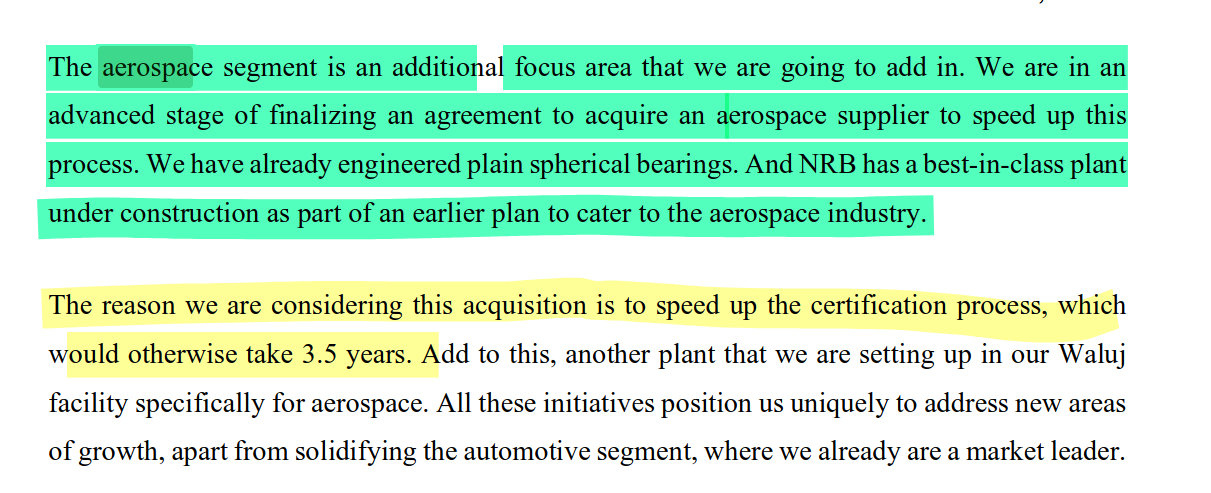 It looks NRB is entering into aerospace space (bearings used in aerospace) and is looking to accquire a company in the same field.