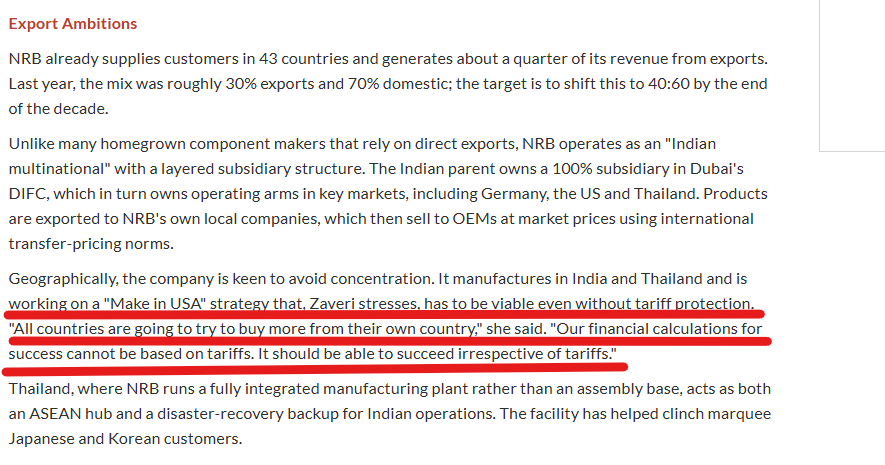 The world of mobility is in the midst of unprecedented transformation. ICE, hybrids, and EVs are all coexisting in a complex ecosystem. There is still widespread speculation on which technology will dominate. But NRB’s strategy is clear: to remain technology-agnostic. And deeply entrenched. Whether in electronic steering systems, e-axles, or next-generation transmissions, our aim is to ensure our products remain indispensable across platforms, irrespective of whether ICE, hybrid or EV will prevail our products co-exist in all and further we dominate in applications that are identical across all three for cars and truck applications. Additionally, no single customer is more than 10% of our sales, and the top 10 customers comprise 50 %- Overall, we have an exceedingly risk–mitigated approach.