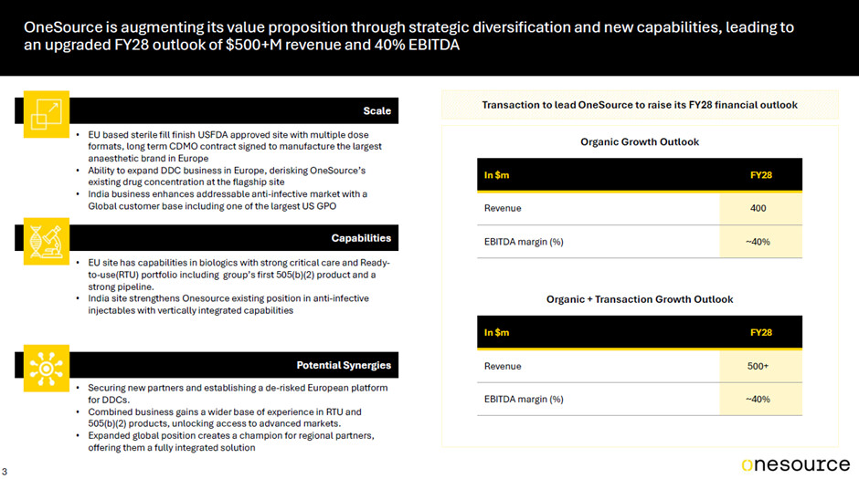 Most of its customers have increased their supply forecast for GLP-1 products for next 18-24 months. Most of the contracts entered by OneSource with its clients are take or pay.