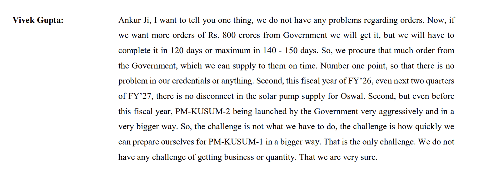 We can say company’s 85-87% of revenue is coming from Kusum Scheme.