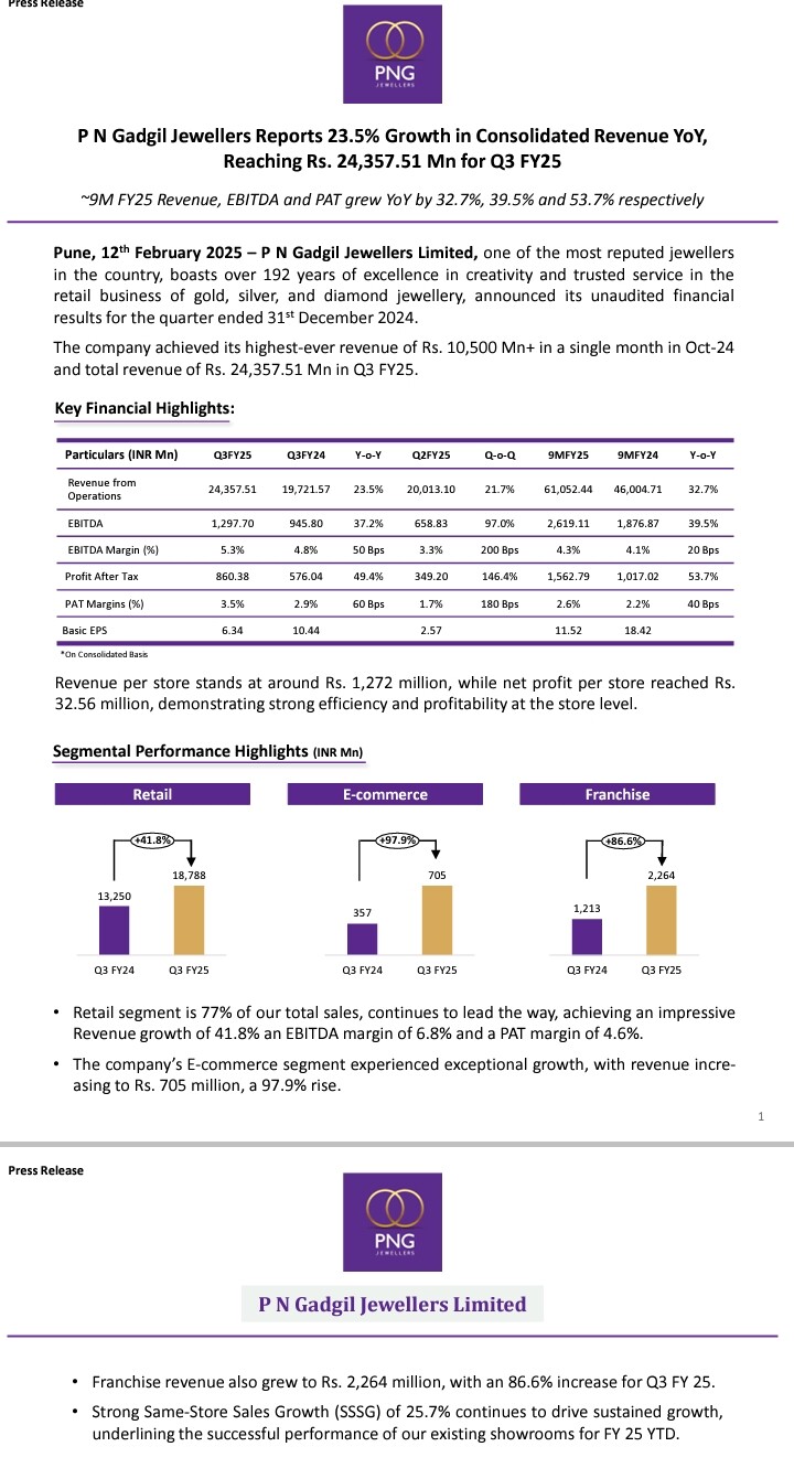 PN Gadgil Jewellers Limited Q3 FY25 Concall Summary