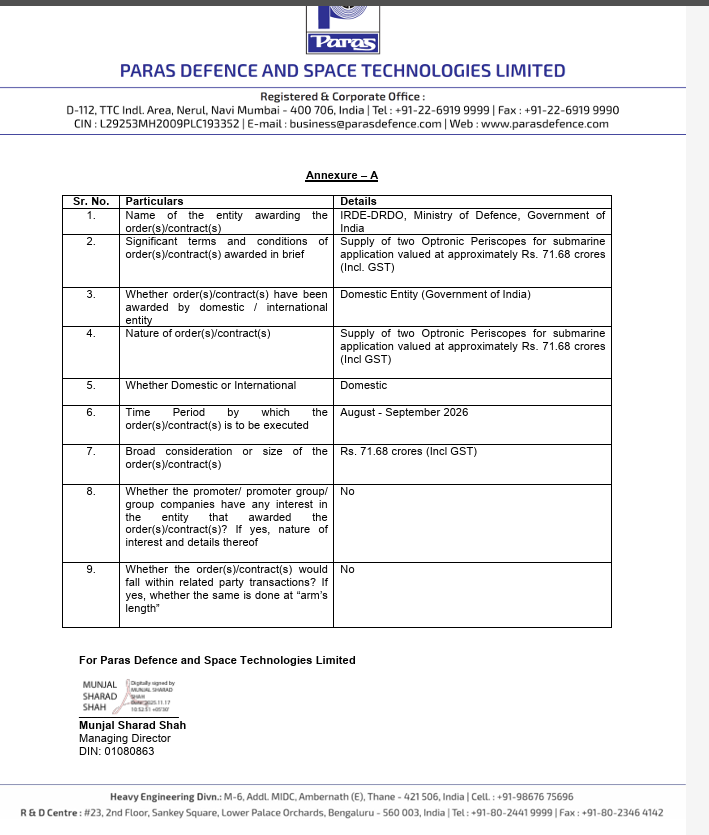 About The Company :- Paras Defence & Space Technologies Limited: A Pioneer in Defence Engineering
